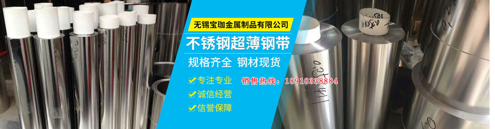 無錫寶珈金屬制品有限公司專業(yè)經(jīng)營不銹鋼板卷材及不銹鋼帶的生產(chǎn)與銷售。長期庫存儲備進口、國產(chǎn)不銹鋼超薄、超硬、超平帶材,厚度從0.01mm-3.0mm,寬度最窄可分到2mm,狀態(tài)由軟、中、硬、特硬,同時可根據(jù)客戶的要求定制各種不銹鋼帶。